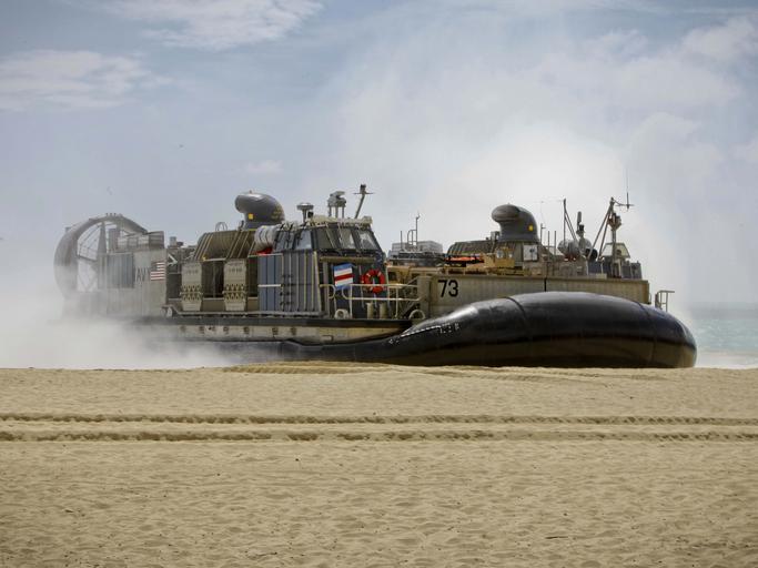| Keywords: bellows air force base bellowsairforcebase hawaii usa outdoor A Landing Craft Air Cushion, with 15th Marine Expeditionary Unit, conducts an amphibious landing demonstration at Marine Corps Training Area Bellows, Hawaii May 19, 2015. The landing is part of Culebra Koa 15, an on-going joint sea-basing exercise taking place in Hawaii during the MARFORPAC-hosted U.S. Pacific Command Amphibious Leaders Symposium (PALS). PALS is designed to bring together senior leaders of allies and partners Marine Corps, naval infantries, and militaries spanning the Indo-Asia-Pacific region with interest in military amphibious capability development. This year, 22 nations sent representatives to observe the training. (U.S. Marine Corps photo by Cpl.Hilda Becerra) A Landing Craft Air Cushion, with 15th Marine Expeditionary Unit, conducts an amphibious landing demonstration at Marine Corps Training Area Bellows, Hawaii May 19, 2015. The landing is part of Culebra Koa 15, an on-going joint sea-basing exercise taking place in Hawaii during the MARFORPAC-hosted U.S. Pacific Command Amphibious Leaders Symposium (PALS). PALS is designed to bring together senior leaders of allies and partners Marine Corps, naval infantries, and militaries spanning the Indo-Asia-Pacific region with interest in military amphibious capability development. This year, 22 nations sent representatives to observe the training. (U.S. Marine Corps photo by Cpl.Hilda Becerra) |