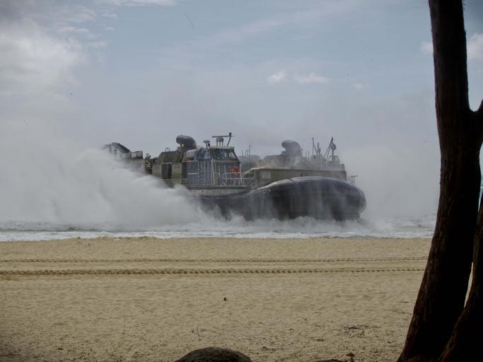 Keywords: bellows air force base bellowsairforcebase hawaii usa outdoor A Landing Craft Air Cushion, with 15th Marine Expeditionary Unit, conducts an amphibious landing demonstration at Marine Corps Training Area Bellows, Hawaii May 19, 2015. The landing is part of Culebra Koa 15, an on-going joint sea-basing exercise taking place in Hawaii during the MARFORPAC-hosted U.S. Pacific Command Amphibious Leaders Symposium (PALS). PALS is designed to bring together senior leaders of allies and partners Marine Corps, naval infantries, and militaries spanning the Indo-Asia-Pacific region with interest in military amphibious capability development. This year, 22 nations sent representatives to observe the training. (U.S. Marine Corps photo by Cpl.Hilda Becerra) A Landing Craft Air Cushion, with 15th Marine Expeditionary Unit, conducts an amphibious landing demonstration at Marine Corps Training Area Bellows, Hawaii May 19, 2015. The landing is part of Culebra Koa 15, an on-going joint sea-basing exercise taking place in Hawaii during the MARFORPAC-hosted U.S. Pacific Command Amphibious Leaders Symposium (PALS). PALS is designed to bring together senior leaders of allies and partners Marine Corps, naval infantries, and militaries spanning the Indo-Asia-Pacific region with interest in military amphibious capability development. This year, 22 nations sent representatives to observe the training. (U.S. Marine Corps photo by Cpl.Hilda Becerra)