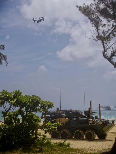 | Keywords: bellows air force base bellowsairforcebase hawaii usa outdoor An Amphibious Assualt Vehicle, with Battalion Landing Team, 15th Marine Expeditionary Unit, conduct an amphibious landing demonstration at Marine Corps Training Area Bellows, Hawaii May 19, 2015. The landing is part of Culebra Koa 15, an on-going joint sea-basing exercise taking place in Hawaii during the MARFORPAC-hosted U.S. Pacific Command Amphibious Leaders Symposium (PALS). PALS is designed to bring together senior leaders of allies and partners Marine Corps, naval infantries, and militaries spanning the Indo-Asia-Pacific region with interest in military amphibious capability development. This year, 22 nations sent representatives to observe the training. (U.S. Marine Corps photo by Cpl.Hilda Becerra) An Amphibious Assualt Vehicle, with Battalion Landing Team, 15th Marine Expeditionary Unit, conduct an amphibious landing demonstration at Marine Corps Training Area Bellows, Hawaii May 19, 2015. The landing is part of Culebra Koa 15, an on-going joint sea-basing exercise taking place in Hawaii during the MARFORPAC-hosted U.S. Pacific Command Amphibious Leaders Symposium (PALS). PALS is designed to bring together senior leaders of allies and partners Marine Corps, naval infantries, and militaries spanning the Indo-Asia-Pacific region with interest in military amphibious capability development. This year, 22 nations sent representatives to observe the training. (U.S. Marine Corps photo by Cpl.Hilda Becerra) |