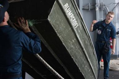 | Keywords: 150609-N-GZ947-088 PACIFIC OCEAN, (June 9, 2015) - Sailors prepare to stow a pump boat aboard USS John C. Stennis (CVN 74). Stennis is currently undergoing an operational training period in preparation for future deployments. (U.S. Navy photo by Mass Communication Specialist Seaman Kenneth Rodriguez Santiago / Released) pacificocean ussjohncstennis cvn74 |