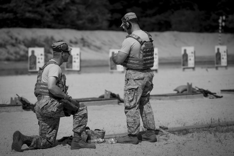 | Keywords: u.s. air force usairforce united states air force unitedstatesairforce usaf air national guard airnationalguard ang acc air combat command aircombatcommand tacp tactical air control party tacticalaircontrolparty jtac joint terminal attack controller jointterminalattackcontroller sf security forces securityforces security police securitypolice range weapons qualification course of fire courseoffire joint base mdl jointbasemdl catm combat arms combatarms military 177th fighter wing 177thfighterwing 227th air support operations squadron 227thairsupportoperationssquadron joint base mcguire-dix-lakehurst jointbasemcguiredixlakehurst n.j. nj usa public domain royalty free getty reuters ap blackandwhite monochrome outdoor black and white Security forces specialists from the New Jersey Air National Guard's 177th Security Forces Squadron refill on ammunition during weapons qualifications on Joint Base McGuire-Dix-Lakehurst, N.J., June 10, 2015. (U.S. Air National Guard photo by Tech. Sgt. Matt Hecht/Released) Security forces specialists from the New Jersey Air National Guard's 177th Security Forces Squadron refill on ammunition during weapons qualifications on Joint Base McGuire-Dix-Lakehurst, N.J., June 10, 2015. (U.S. Air National Guard photo by Tech. Sgt. Matt Hecht/Released) |