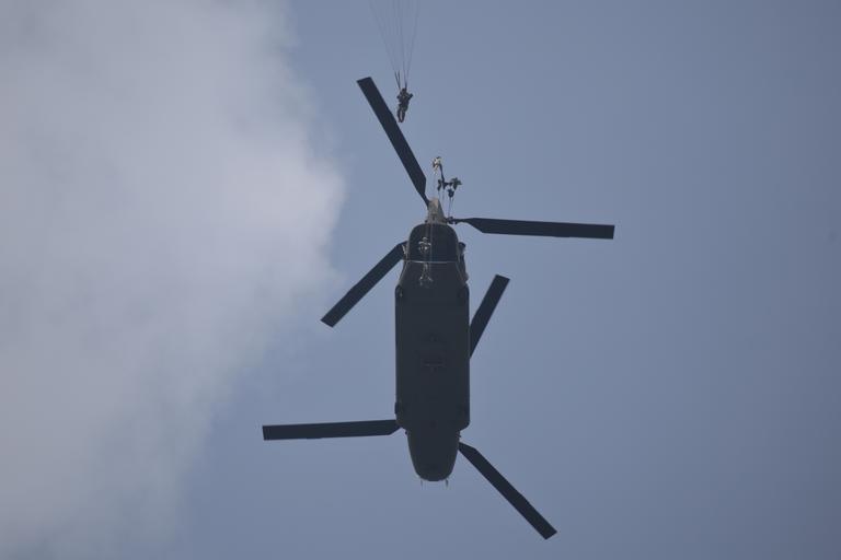 | Keywords: usa usaf u.s. air force usairforce united states air force unitedstatesairforce air national guard airnationalguard air force airforce ang acc u.s. army usarmy reserve 227th air support operations squadron 227thairsupportoperationssquadron 227th asos 227thasos national guard nationalguard nj njang new jersey air national guard newjerseyairnationalguard new jersey national guard newjerseynationalguard airborne jump training maryland army national guard marylandarmynationalguard soldier airman airmen joint training jointtraining tacp jtac army national guard armynationalguard 404th civil affairs battalion 404thcivilaffairsbattalion civil affairs civilaffairs joint base mdl jointbasemdl joint base mcguire-dix-lakehurst jointbasemcguiredixlakehurst ch-47 ch47 chinook helicopter air assault airassault aviation helo chopper military photo combat training combattraining public domain royalty free getty reuters ap monochrome aerial outdoor U.S. Army Reserve Soldiers from the 404th Civil Affairs Battalion (Airborne) and Tactical Air Control Party Airmen from the New Jersey Air National Guard's 227th Air Support Operations Squadron jump from a CH-47 Chinook helicopter from the Maryland Army National Guard at Scorpion Drop Zone on Joint Base McGuire-Dix-Lakehurst, N.J., June 12, 2015. (U.S. Air National Guard photo by Tech. Sgt. Matt Hecht/Released) U.S. Army Reserve Soldiers from the 404th Civil Affairs Battalion (Airborne) and Tactical Air Control Party Airmen from the New Jersey Air National Guard's 227th Air Support Operations Squadron jump from a CH-47 Chinook helicopter from the Maryland Army National Guard at Scorpion Drop Zone on Joint Base McGuire-Dix-Lakehurst, N.J., June 12, 2015. (U.S. Air National Guard photo by Tech. Sgt. Matt Hecht/Released)  |