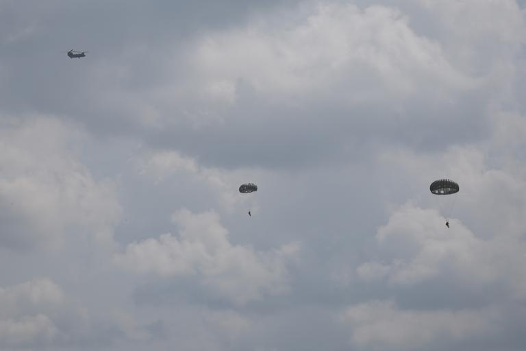 | Keywords: usa usaf u.s. air force usairforce united states air force unitedstatesairforce air national guard airnationalguard air force airforce ang acc u.s. army usarmy reserve 227th air support operations squadron 227thairsupportoperationssquadron 227th asos 227thasos national guard nationalguard nj njang new jersey air national guard newjerseyairnationalguard new jersey national guard newjerseynationalguard airborne jump training maryland army national guard marylandarmynationalguard soldier airman airmen joint training jointtraining tacp jtac army national guard armynationalguard 404th civil affairs battalion 404thcivilaffairsbattalion civil affairs civilaffairs joint base mdl jointbasemdl joint base mcguire-dix-lakehurst jointbasemcguiredixlakehurst ch-47 ch47 chinook helicopter air assault airassault aviation helo chopper military photo combat training combattraining public domain royalty free getty reuters ap outdoor sky U.S. Army Reserve Soldiers from the 404th Civil Affairs Battalion (Airborne) and Tactical Air Control Party Airmen from the New Jersey Air National Guard's 227th Air Support Operations Squadron jump from a CH-47 Chinook helicopter from the Maryland Army National Guard at Scorpion Drop Zone on Joint Base McGuire-Dix-Lakehurst, N.J., June 12, 2015. (U.S. Air National Guard photo by Tech. Sgt. Matt Hecht/Released) U.S. Army Reserve Soldiers from the 404th Civil Affairs Battalion (Airborne) and Tactical Air Control Party Airmen from the New Jersey Air National Guard's 227th Air Support Operations Squadron jump from a CH-47 Chinook helicopter from the Maryland Army National Guard at Scorpion Drop Zone on Joint Base McGuire-Dix-Lakehurst, N.J., June 12, 2015. (U.S. Air National Guard photo by Tech. Sgt. Matt Hecht/Released)  |