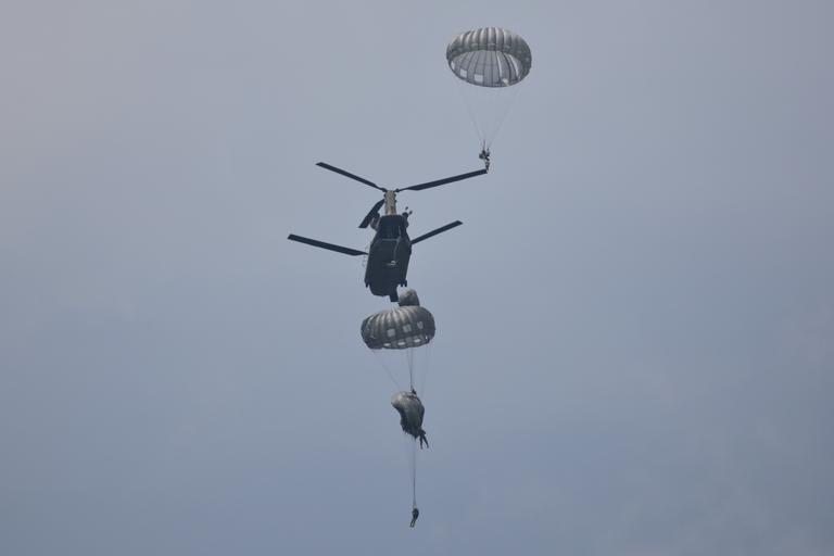 | Keywords: usa usaf u.s. air force usairforce united states air force unitedstatesairforce air national guard airnationalguard air force airforce ang acc u.s. army usarmy reserve 227th air support operations squadron 227thairsupportoperationssquadron 227th asos 227thasos national guard nationalguard nj njang new jersey air national guard newjerseyairnationalguard new jersey national guard newjerseynationalguard airborne jump training maryland army national guard marylandarmynationalguard soldier airman airmen joint training jointtraining tacp jtac army national guard armynationalguard 404th civil affairs battalion 404thcivilaffairsbattalion civil affairs civilaffairs joint base mdl jointbasemdl joint base mcguire-dix-lakehurst jointbasemcguiredixlakehurst ch-47 ch47 chinook helicopter air assault airassault aviation helo chopper military photo combat training combattraining public domain royalty free getty reuters ap monochrome U.S. Army Reserve Soldiers from the 404th Civil Affairs Battalion (Airborne) and Tactical Air Control Party Airmen from the New Jersey Air National Guard's 227th Air Support Operations Squadron jump from a CH-47 Chinook helicopter from the Maryland Army National Guard at Scorpion Drop Zone on Joint Base McGuire-Dix-Lakehurst, N.J., June 12, 2015. (U.S. Air National Guard photo by Tech. Sgt. Matt Hecht/Released) U.S. Army Reserve Soldiers from the 404th Civil Affairs Battalion (Airborne) and Tactical Air Control Party Airmen from the New Jersey Air National Guard's 227th Air Support Operations Squadron jump from a CH-47 Chinook helicopter from the Maryland Army National Guard at Scorpion Drop Zone on Joint Base McGuire-Dix-Lakehurst, N.J., June 12, 2015. (U.S. Air National Guard photo by Tech. Sgt. Matt Hecht/Released)  |