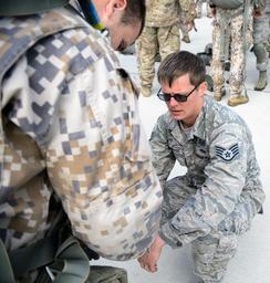 | Keywords: airmen saber strike 15 saberstrike15 air force airforce usaf mf529 latvia service members servicemembers training usafe nato proven partnership provenpartnership forward ready now forwardreadynow military a-10 a10 ceremony saberstrike atlanticresolve allied shield alliedshield friendship st15 army joint multi-national multinational jump paratroopers lielvarde air base lielvardeairbase lva people Staff Sgt. Jason Hubbartt, 435th Security Forces Squadron contingency response team member, ensures a Latvian paratrooper is harnessed correctly before jumping June 15, 2015, Lielvarde Air Base, Latvia. More than 70 U.S. Air Force, U.S. Army and Latvian service members participated in a jump day to strengthen the bonds of allies and learn from each other during exercise Saber Strike 15. The exercise involves more than 6,000 service members from 14 nations participation all throughout Estonia, Latvia, Lithuania, and Poland to learn from each other and promote stability is the region. (U.S. Air Force photo/ Staff Sgt. Armando A. Schwier-Morales) Staff Sgt. Jason Hubbartt, 435th Security Forces Squadron contingency response team member, ensures a Latvian paratrooper is harnessed correctly before jumping June 15, 2015, Lielvarde Air Base, Latvia. More than 70 U.S. Air Force, U.S. Army and Latvian service members participated in a jump day to strengthen the bonds of allies and learn from each other during exercise Saber Strike 15. The exercise involves more than 6,000 service members from 14 nations participation all throughout Estonia, Latvia, Lithuania, and Poland to learn from each other and promote stability is the region. (U.S. Air Force photo/ Staff Sgt. Armando A. Schwier-Morales) |