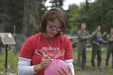 | Keywords: sitka 43 sitka43 c-17 crash c17crash airmen accident elmendorf air force base elmendorfairforcebase alaska 11th air force 11thairforce 11af pacific air forces pacificairforces pacaf u.s. air force usairforce usaf memorial joint base elmendorf-richardson jointbaseelmendorfrichardson usa outdoor Rachael Hill, U.S. Air Force Capt. Jeffrey Hill's widow, writes a message on a ballon as Airmen assigned to the Alaska Air National Guard 249th Airlift Squadron, the U.S. Air Force 517th Airlift Squadron, and family members gather at the crash site of "Sitka 43" on Joint Base Elmendorf-Richardson, Alaska, to remember the lives of their comrades and loved ones on the fifth anniversary of the accident, Tuesday, July 28, 2015. On July 28, 2010, a 3rd Wing C-17 Globemaster III, a cargo aircraft, crashed shortly after take-off at about 6:14 p.m. (Alaska time) during a local training mission. The four crew members on board were killed in the crash; Majors Michael Freyholtz and Aaron Malone, pilots assigned to the Alaska Air National Guard’s 249th Airlift Squadron, Capt. Jeffrey Hill, a pilot assigned to the 517th Airlift Squadron, and Senior Master Sgt. Thomas Cicardo, 249th Airlift Squadron loadmaster. (U.S. Air Force photo/Justin Connaher) Rachael Hill, U.S. Air Force Capt. Jeffrey Hill's widow, writes a message on a ballon as Airmen assigned to the Alaska Air National Guard 249th Airlift Squadron, the U.S. Air Force 517th Airlift Squadron, and family members gather at the crash site of "Sitka 43" on Joint Base Elmendorf-Richardson, Alaska, to remember the lives of their comrades and loved ones on the fifth anniversary of the accident, Tuesday, July 28, 2015. On July 28, 2010, a 3rd Wing C-17 Globemaster III, a cargo aircraft, crashed shortly after take-off at about 6:14 p.m. (Alaska time) during a local training mission. The four crew members on board were killed in the crash; Majors Michael Freyholtz and Aaron Malone, pilots assigned to the Alaska Air National Guard’s 249th Airlift Squadron, Capt. Jeffrey Hill, a pilot assigned to the 517th Airlift Squadron, and Senior Master Sgt. Thomas Cicardo, 249th Airlift Squadron loadmaster. (U.S. Air Force photo/Justin Connaher) |
