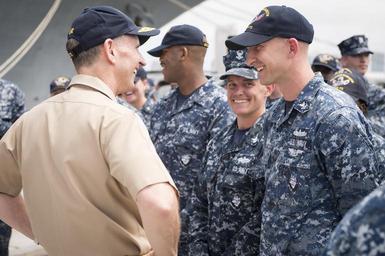 | Keywords: adm. jonathan greenert admjonathangreenert cno chief of naval operations chiefofnavaloperations navy leadership navyleadership u.s. navy usnavy san diego sandiego calif. calif outdoor 150817-N-AT895-565 SAN DIEGO Calif. (Aug. 17, 2015) Chief of Naval Operations (CNO) Adm. Jonathan Greenert talks to Sailors from USS George Washington (CVN 73) during a Cooks from the Valley barbecue at Naval Air Station North Island. George Washington completed a crew and equipment swap with the aircraft carrier USS Ronald Reagan (CVN 76) before beginning its transit to Norfolk, Virginia, where it will prepare for its mid-life refueling and complex overhaul (RCOH).(U.S. Navy photo by Mass Communication Specialist 1st Class Nathan Laird/Released) 150817-N-AT895-565 SAN DIEGO Calif. (Aug. 17, 2015) Chief of Naval Operations (CNO) Adm. Jonathan Greenert talks to Sailors from USS George Washington (CVN 73) during a Cooks from the Valley barbecue at Naval Air Station North Island. George Washington completed a crew and equipment swap with the aircraft carrier USS Ronald Reagan (CVN 76) before beginning its transit to Norfolk, Virginia, where it will prepare for its mid-life refueling and complex overhaul (RCOH).(U.S. Navy photo by Mass Communication Specialist 1st Class Nathan Laird/Released) |