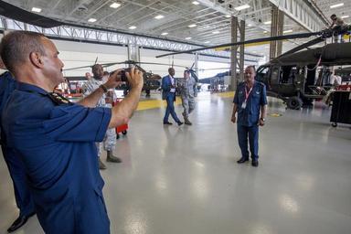 Keywords: african air forces africanairforces african partnership flight africanpartnershipflight africom tour visit conference army aviation support facility armyaviationsupportfacility aasf uh-60a black hawk uh60ablackhawk black hawk blackhawk uh-60a uh60a uh-60 uh60 helicopter helicopters 1-150th assault helicopter battalion 1150thassaulthelicopterbattalion 1-150 ahb 1150ahb new jersey army national guard newjerseyarmynationalguard njarng new jersey national guard newjerseynationalguard njng army national guard armynationalguard arng soldier soldiers aviator aviators crew chief crewchief national guard nationalguard ng u.s. air forces in europe usairforcesineurope usafe u.s. air forces africa usairforcesafrica usafa maintenance logistics knowledge procedures regional military to military events regionalmilitarytomilitaryevents aviation capacity aviationcapacity enhance regional cooperation enhanceregionalcooperation cooperation increase interoperability increaseinteroperability interoperability africa angola burkina faso burkinafaso ghana mali niger nigeria senegal tunisia military united states air force unitedstatesairforce usaf air force airforce af joint base mcguire-dix-lakehurst jointbasemcguiredixlakehurst jbmdl n.j. nj new jersey newjersey aug. 31 2015 aug312015 photo by master sgt. mark c. olsen photobymastersgtmarkcolsen u.s. us Visiting African air force members tour the New Jersey Army National Guard’s Army Aviation Support Facility during an AFRICOM conference at Joint Base McGuire-Dix-Lakehurst, N.J., Aug. 31, 2015. The African Partnership Flight visit to the Facility is part of a U.S. Air Forces in Europe and U.S. Air Forces Africa program, which includes military representatives from Angola, Burkina Faso, Ghana, Mali, Niger, Nigeria, Senegal and Tunisia that emphasized increased maintenance and logistics knowledge and procedures. The program was created to conduct regional military to military events with African air forces to build aviation capacity, enhance regional cooperation and increase interoperability. (U.S. Air National Guard photo by Master Sgt. Mark C. Olsen/Released) Visiting African air force members tour the New Jersey Army National Guard’s Army Aviation Support Facility during an AFRICOM conference at Joint Base McGuire-Dix-Lakehurst, N.J., Aug. 31, 2015. The African Partnership Flight visit to the Facility is part of a U.S. Air Forces in Europe and U.S. Air Forces Africa program, which includes military representatives from Angola, Burkina Faso, Ghana, Mali, Niger, Nigeria, Senegal and Tunisia that emphasized increased maintenance and logistics knowledge and procedures. The program was created to conduct regional military to military events with African air forces to build aviation capacity, enhance regional cooperation and increase interoperability. (U.S. Air National Guard photo by Master Sgt. Mark C. Olsen/Released)