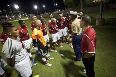 | Keywords: sergeant major of the marine corps sergeantmajorofthemarinecorps sergeant major green sergeantmajorgreen ronald l. green ronaldlgreen smmc usmc marines marine corps marinecorps tempe az u.s.a. usa The 18th Sergeant Major of the Marine Corps, Ronald L. Green, attends an All-Marine Men's Soccer Team scrimmage against the University of Arizona Men's Soccer Team at Sun Devil Soccer Stadium, Tempe, AZ., September 10, 2015. The All-Marine Men's Soccer Team was participating in Marine Week Phoenix. (U.S. Marine Corps photo by Sgt. Melissa Marnell, Office of the 18th Sergeant Major of the Marine Corps/Released) The 18th Sergeant Major of the Marine Corps, Ronald L. Green, attends an All-Marine Men's Soccer Team scrimmage against the University of Arizona Men's Soccer Team at Sun Devil Soccer Stadium, Tempe, AZ., September 10, 2015. The All-Marine Men's Soccer Team was participating in Marine Week Phoenix. (U.S. Marine Corps photo by Sgt. Melissa Marnell, Office of the 18th Sergeant Major of the Marine Corps/Released) |