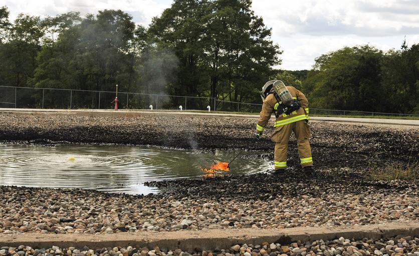 | Keywords: air force usaf 182 aw airlift wing peoria illinois ill ang national guard il angb ngb mobility command amc z northcom wingman family day resiliency fire protection specialist civil engineer squadron firefighter jet fuel controlled burn usa outdoor U.S. Air Force Master Sgt. Bart S. Ridings, fire protection specialist with the 182nd Civil Engineer Squadron, Illinois Air National Guard, ignites a pool of jet fuel during a controlled-burn demonstration at Wingman and Family Day at the 182nd Airlift Wing, Peoria, Ill., Sept. 12, 2015. The event was organized to promote resiliency in Airmen and their friends and family. (U.S. Air National Guard photo by Staff Sgt. Lealan Buehrer/Released) U.S. Air Force Master Sgt. Bart S. Ridings, fire protection specialist with the 182nd Civil Engineer Squadron, Illinois Air National Guard, ignites a pool of jet fuel during a controlled-burn demonstration at Wingman and Family Day at the 182nd Airlift Wing, Peoria, Ill., Sept. 12, 2015. The event was organized to promote resiliency in Airmen and their friends and family. (U.S. Air National Guard photo by Staff Sgt. Lealan Buehrer/Released) |