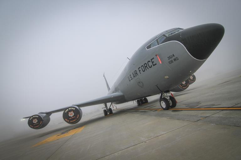 MAKE A MEME View Large Image Air Force KC-135 Stratotanker from the New Jersey Air National Guard's 108th Wing sits on a foggy flight line at Joint Base McGuire-Dix-Lakehurst, N.J., Sept. 19, 2015. (U.S. Air National Guard photo by Tech. Sgt. Matt Hecht/Released) A ...