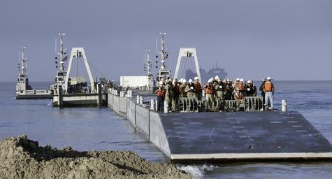 | Keywords: sailors war fighters warfighters war fighting warfighting fast flexible worldwide deployed on watch onwatch preserve peace preservepeace deter aggression deteraggression defend freedom defendfreedom heritage operate forward operateforward be ready beready tradition freedom protect commerce sea lanes sealanes liberty navy u.s. navy usnavy america united states unitedstates military war fighting first warfightingfirst nmcs navy media content service navymediacontentservice chinfo outdoor waterfront water 150926-N-KK081-196 SAN DIEGO (Sept. 26, 2015) The improved Navy lighterage system (INLS) floating causeway stabs the sand ramp during Exercise Brilliant Zenith 2015 (BZ15). BZ15 is an assault follow-on echelon exercise designed to conduct ship-to-shore transportation of Navy cargo with the INLS Floating Causeway embarked aboard the Military Sealift Command heavy lift ship SS Cape Mohican (T-AKR 5065) and improve interoperability with Naval Beach Group 1, Amphibious Construction Battalion 2, Expeditionary Warfare Training Group, Pacific and Navy Cargo Handling Battalion 1. (U.S. Navy photo by Mass Communication Specialist 3rd Class Eric Chan/Released) 150926-N-KK081-196 SAN DIEGO (Sept. 26, 2015) The improved Navy lighterage system (INLS) floating causeway stabs the sand ramp during Exercise Brilliant Zenith 2015 (BZ15). BZ15 is an assault follow-on echelon exercise designed to conduct ship-to-shore transportation of Navy cargo with the INLS Floating Causeway embarked aboard the Military Sealift Command heavy lift ship SS Cape Mohican (T-AKR 5065) and improve interoperability with Naval Beach Group 1, Amphibious Construction Battalion 2, Expeditionary Warfare Training Group, Pacific and Navy Cargo Handling Battalion 1. (U.S. Navy photo by Mass Communication Specialist 3rd Class Eric Chan/Released) |