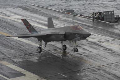 | Keywords: ike f-35 f35 uss dwight d. eisenhower ussdwightdeisenhower atlantic ocean atlanticocean outdoor 151002-N-TR635-044. ATLANTIC OCEAN (Oct. 2, 2015) An F-35C Lightning II carrier variant joint strike fighter assigned to the Salty Dogs of Air Test and Evaluation Squadron (VX) 23 makes an arrested landing aboard the aircraft carrier USS Dwight D. Eisenhower (CVN 69). The F-35C Lightning II Pax River Integrated Test Force is currently conducting follow-on-sea trials aboard the Eisenhower. (U.S. Navy Photo by Rachel E. Rakoff/Released) 151002-N-TR635-044. ATLANTIC OCEAN (Oct. 2, 2015) An F-35C Lightning II carrier variant joint strike fighter assigned to the Salty Dogs of Air Test and Evaluation Squadron (VX) 23 makes an arrested landing aboard the aircraft carrier USS Dwight D. Eisenhower (CVN 69). The F-35C Lightning II Pax River Integrated Test Force is currently conducting follow-on-sea trials aboard the Eisenhower. (U.S. Navy Photo by Rachel E. Rakoff/Released) |