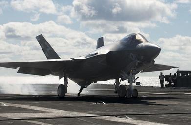 | Keywords: andrew mcmurtrie andrewmcmurtrie f-35 f35 f-35c f35c navy pax river itf paxriveritf nas patuxent river naspatuxentriver navair vx-23 vx23 pax river paxriver itf cf-03 cf03 cf-05 cf05 uss dwight d. eisenhower ussdwightdeisenhower cvn 69 cvn69 carrier naval aviation navalaviation joint strike fighter jointstrikefighter jsf atlantic ocean atlanticocean outdoor aircraft vehicle airplane ATLANTIC OCEAN (Oct. 2, 2015) Cmdr. Tony "Brick" Wilson makes an arrested landing with an F-35C Lightning II aboard USS Dwight D. Eisenhower (CVN 69) during the second developmental test (DT-II) phase of the next-generation strike fighter. Wilson made naval aviation history Nov. 3, 2014 when he made the inaugural F-35C arrested landing aboard the flight deck of a U.S. Navy aircraft carrier. Wilson and a team from the F-35 Lightning II Pax River Integrated Test Force from Air Test and Evaluation Squadron (VX) 23 are conducting carrier suitability and integration testing of the F-35C. (U.S. Navy Photo Courtesy Lockheed Martin Photo by Andrew McMurtrie/Released) ATLANTIC OCEAN (Oct. 2, 2015) Cmdr. Tony "Brick" Wilson makes an arrested landing with an F-35C Lightning II aboard USS Dwight D. Eisenhower (CVN 69) during the second developmental test (DT-II) phase of the next-generation strike fighter. Wilson made naval aviation history Nov. 3, 2014 when he made the inaugural F-35C arrested landing aboard the flight deck of a U.S. Navy aircraft carrier. Wilson and a team from the F-35 Lightning II Pax River Integrated Test Force from Air Test and Evaluation Squadron (VX) 23 are conducting carrier suitability and integration testing of the F-35C. (U.S. Navy Photo Courtesy Lockheed Martin Photo by Andrew McMurtrie/Released) |