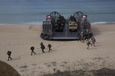| Keywords: uss arlington ussarlington usmc comcam ch-53e ch53e lisbon portugal outdoor 151020-M-CV548-095 PINHEIRO DA CRUZ, PRAIA DA RAPOSA, Portugal (Oct. 20, 2015) U.S. and Portuguese Marines disembark from a Landing Craft Air Cushion (LCAC) on Pinheiro Da Cruz beach to during a combined amphibious assault exercised as part of Trident Juncture 15, Oct. 20, 2015. Trident Juncture is a NATO-led exercise designed to certify NATO response forces and develop interoperability among participating NATO and partner nations. The Marines are part of the 26th Marine Expeditionary Unit, embarked on the Kearsarge Amphibious Ready Group. (U.S. Marine Corps photo by Cpl Jeraco Jenkins/Released) 151020-M-CV548-095 PINHEIRO DA CRUZ, PRAIA DA RAPOSA, Portugal (Oct. 20, 2015) U.S. and Portuguese Marines disembark from a Landing Craft Air Cushion (LCAC) on Pinheiro Da Cruz beach to during a combined amphibious assault exercised as part of Trident Juncture 15, Oct. 20, 2015. Trident Juncture is a NATO-led exercise designed to certify NATO response forces and develop interoperability among participating NATO and partner nations. The Marines are part of the 26th Marine Expeditionary Unit, embarked on the Kearsarge Amphibious Ready Group. (U.S. Marine Corps photo by Cpl Jeraco Jenkins/Released) |
