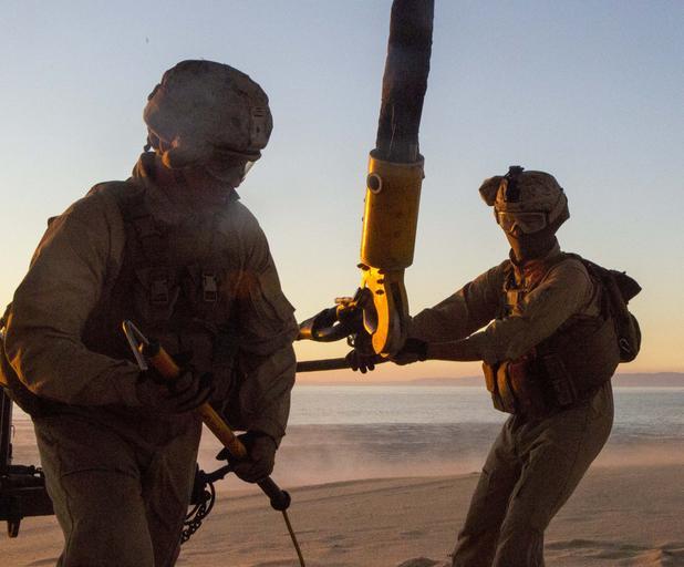 | Keywords: trident juncture 15 tridentjuncture15 marines u.s. marines usmarines 26 meu 26meu 26th marine expeditionary unit 26thmarineexpeditionaryunit hst ch-53e sea stallion ch53eseastallion sunset training beach landing support specialist landingsupportspecialist ls landing support detachment landingsupportdetachment 151029-M-WC184-007 PINHEIRO DA CRUZ, PRAIA DA RAPOSA, Portugal – U.S. Marine Lance Cpl. Micah English, a landing support specialists, with the Landing Support Detachment, 26th Marine Expeditionary Unit embarked aboard the amphibious transport dock ship USS Arlington (LPD 24) runs out from underneath a CH-53E Super Stallion with Marine Medium Tilt rotor Squadron 162 (VMM-162), 26th MEU, embarked on the USS Arlington, hovering overhead, while U.S. Marine Lance Cpl. James Stamper, a landing support specialists, holds the connected sling during an external lift training exercise at Pinheiro Da Cruz, Praia Da Raposa Beach, Portugal, Oct. 22, 2015, during Trident Juncture 15. Trident Juncture is a NATO-led exercise designed to certify NATO response forces and develop interoperability among participating NATO and partner nations. (United States Marine Corps photo by Sgt. Austin Long/ Released) 151029-M-WC184-007 PINHEIRO DA CRUZ, PRAIA DA RAPOSA, Portugal – U.S. Marine Lance Cpl. Micah English, a landing support specialists, with the Landing Support Detachment, 26th Marine Expeditionary Unit embarked aboard the amphibious transport dock ship USS Arlington (LPD 24) runs out from underneath a CH-53E Super Stallion with Marine Medium Tilt rotor Squadron 162 (VMM-162), 26th MEU, embarked on the USS Arlington, hovering overhead, while U.S. Marine Lance Cpl. James Stamper, a landing support specialists, holds the connected sling during an external lift training exercise at Pinheiro Da Cruz, Praia Da Raposa Beach, Portugal, Oct. 22, 2015, during Trident Juncture 15. Trident Juncture is a NATO-led exercise designed to certify NATO response forces and develop interoperability among participating NATO and partner nations. (United States Marine Corps photo by Sgt. Austin Long/ Released) |