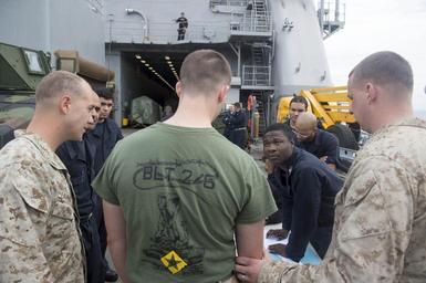 | Keywords: uss oak hill ussoakhill lsd 51 lsd51 amphibious dock landing ship amphibiousdocklandingship mediterrean sea mediterreansea 151026-N-JO245-697 MEDITERREAN SEA (Oct. 26, 2015) Yeoman 3rd Class Evans Kpodoviah, from New York City, interviews a Marine portraying a person in distress during a rescue drill aboard the amphibious dock landing ship USS Oak Hill (LSD 51) Oct. 26, 2015. Oak Hill, deployed as part of the Kearsarge Amphibious Ready Group, is conducting naval operations in the U.S. 6th Fleet area of operations in support of U.S. national security interests in Europe. (U.S. Navy photo by Mass Communication Specialist 2nd Class Justin Yarborough/Released) 151026-N-JO245-697 MEDITERREAN SEA (Oct. 26, 2015) Yeoman 3rd Class Evans Kpodoviah, from New York City, interviews a Marine portraying a person in distress during a rescue drill aboard the amphibious dock landing ship USS Oak Hill (LSD 51) Oct. 26, 2015. Oak Hill, deployed as part of the Kearsarge Amphibious Ready Group, is conducting naval operations in the U.S. 6th Fleet area of operations in support of U.S. national security interests in Europe. (U.S. Navy photo by Mass Communication Specialist 2nd Class Justin Yarborough/Released) |