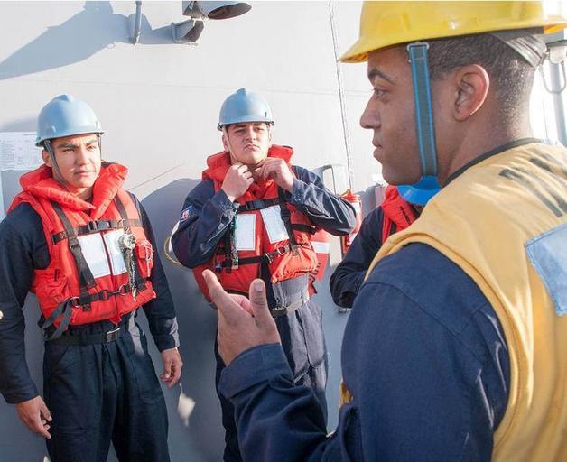 | Keywords: hat 151111-N-ZZ999-002 ATLANTIC OCEAN (Nov. 11, 2015) Boatswain’s Mate 2nd Class Richard Woodland, fromHighland Park, West Virginia, explains deck safety precautions with two Sailors aboard USS Carney (DDG 64) Nov. 11, 2015. Carney, an Arleigh Burke-class guided-missile destroyer, forward deployed to Rota, Spain is conducting a routine patrol in the U.S. 6th Fleet area of operations in support of U.S. national security interests in Europe. (U.S. Navy photo by Senior Chief Personnel Specialist Galen Draper/ Released) 151111-N-ZZ999-002 ATLANTIC OCEAN (Nov. 11, 2015) Boatswain’s Mate 2nd Class Richard Woodland, fromHighland Park, West Virginia, explains deck safety precautions with two Sailors aboard USS Carney (DDG 64) Nov. 11, 2015. Carney, an Arleigh Burke-class guided-missile destroyer, forward deployed to Rota, Spain is conducting a routine patrol in the U.S. 6th Fleet area of operations in support of U.S. national security interests in Europe. (U.S. Navy photo by Senior Chief Personnel Specialist Galen Draper/ Released) |