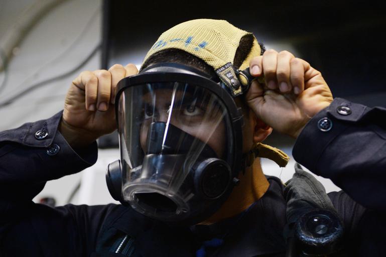 | Keywords: u.s. navy usnavy uss ross (ddg 71) ussrossddg71 151124-N-XT273-045 MEDITERRANEAN SEA (Nov. 24, 2015) Gas Turbine Systems Technician (Electrical) Fireman Justin Santis demonstrates the proper use of a Self-Contained Breathing Apparatus mask during egress training aboard USS Ross (DDG 71) Nov. 24, 2015. Ross, an Arleigh Burke-class guided-missile destroyer, forward deployed to Rota, Spain, is conducting naval operations in the U.S. 6th Fleet area of operations in support of U.S. national security interests in Europe. (U.S. Navy photo by Mass Communication Specialist 2nd Class Justin Stumberg/Released) 151124-N-XT273-045 MEDITERRANEAN SEA (Nov. 24, 2015) Gas Turbine Systems Technician (Electrical) Fireman Justin Santis demonstrates the proper use of a Self-Contained Breathing Apparatus mask during egress training aboard USS Ross (DDG 71) Nov. 24, 2015. Ross, an Arleigh Burke-class guided-missile destroyer, forward deployed to Rota, Spain, is conducting naval operations in the U.S. 6th Fleet area of operations in support of U.S. national security interests in Europe. (U.S. Navy photo by Mass Communication Specialist 2nd Class Justin Stumberg/Released) |