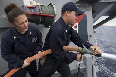 | Keywords: mediterranean uss carney (ddg 64) usscarneyddg64 151210-N-FP878-008 MEDITERRANEAN SEA (Dec. 10, 2015) Gunner’s Mate 2nd Class Meghan Schnurr, left, from Barnhart, Missouri, and Fire Controlman 2nd Class Tyler Luckman from Medina, New York, flush a magazine sprinkler valve during routine maintenance aboard USS Carney (DDG 64) Dec. 10, 2015. Carney, an Arleigh Burke-class guided missile destroyer, forward deployed to Rota, Spain, is conducting a routine patrol in the U. S. 6th Fleet area of operations in support of U.S. national security interests in Europe. (U.S. Navy photo by Mass Communication Specialist 1st Class Theron J. Godbold/Released) 151210-N-FP878-008 MEDITERRANEAN SEA (Dec. 10, 2015) Gunner’s Mate 2nd Class Meghan Schnurr, left, from Barnhart, Missouri, and Fire Controlman 2nd Class Tyler Luckman from Medina, New York, flush a magazine sprinkler valve during routine maintenance aboard USS Carney (DDG 64) Dec. 10, 2015. Carney, an Arleigh Burke-class guided missile destroyer, forward deployed to Rota, Spain, is conducting a routine patrol in the U. S. 6th Fleet area of operations in support of U.S. national security interests in Europe. (U.S. Navy photo by Mass Communication Specialist 1st Class Theron J. Godbold/Released) |