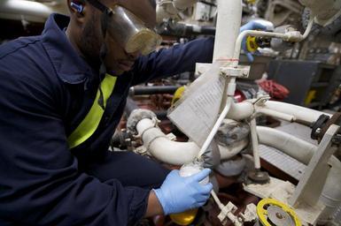 | Keywords: mediterranean uss carney (ddg 64) usscarneyddg64 151210-N-FP878-087 MEDITERRANEAN SEA (Dec. 10, 2015) Gas Turbine Systems Technician (Mechanical) Fireman Lephabion Griggs from Dallas takes a fuel sample from the fuel purifier in main engine room number one aboard USS Carney (DDG 64) Dec. 10, 2015. Carney, an Arleigh Burke-class guided missile destroyer, forward deployed to Rota, Spain, is conducting a routine patrol in the U. S. 6th Fleet area of operations in support of U.S. national security interests in Europe. (U.S. Navy photo by Mass Communication Specialist 1st Class Theron J. Godbold/Released) 151210-N-FP878-087 MEDITERRANEAN SEA (Dec. 10, 2015) Gas Turbine Systems Technician (Mechanical) Fireman Lephabion Griggs from Dallas takes a fuel sample from the fuel purifier in main engine room number one aboard USS Carney (DDG 64) Dec. 10, 2015. Carney, an Arleigh Burke-class guided missile destroyer, forward deployed to Rota, Spain, is conducting a routine patrol in the U. S. 6th Fleet area of operations in support of U.S. national security interests in Europe. (U.S. Navy photo by Mass Communication Specialist 1st Class Theron J. Godbold/Released) |