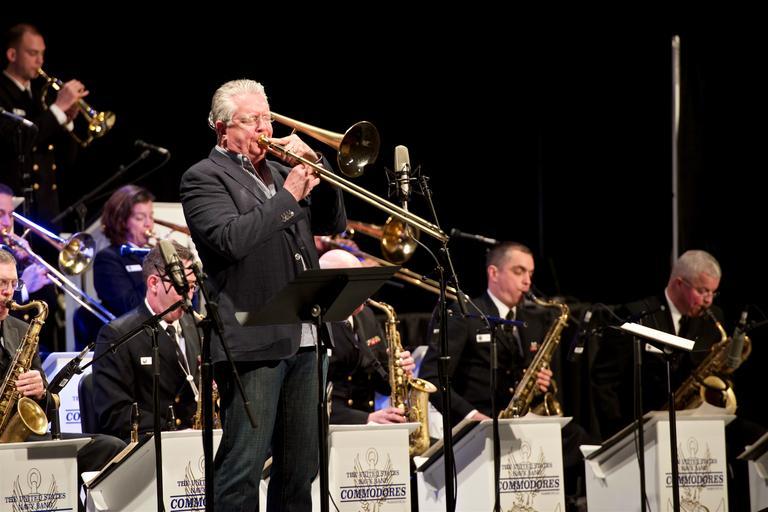 | Keywords: concert band music concert CHICAGO (Dec. 17, 2015) Jazz artist Jim Pugh, professor of jazz studies at the University of Illinois, performs with the U.S. Navy Band Commodores at the 2015 Midwest Clinic in Chicago. The Midwest Clinic, a four-day conference attended by more than 17,000 musicians, educators and students, is the largest event of its kind. (U.S. Navy photo by Chief Musician Adam Grimm/Released) CHICAGO (Dec. 17, 2015) Jazz artist Jim Pugh, professor of jazz studies at the University of Illinois, performs with the U.S. Navy Band Commodores at the 2015 Midwest Clinic in Chicago. The Midwest Clinic, a four-day conference attended by more than 17,000 musicians, educators and students, is the largest event of its kind. (U.S. Navy photo by Chief Musician Adam Grimm/Released) |