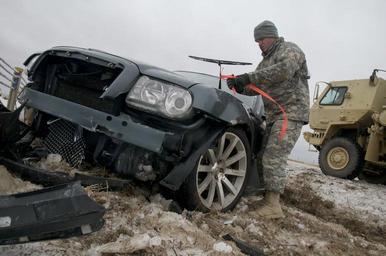 | Keywords: state active duty stateactiveduty winter weather winterweather oklahoma highway patrol oklahomahighwaypatrol english crashed car crashedcar south west blizzard 2015 southwestblizzard2015 perry oklahoma united states unitedstates us outdoor vehicle car Sgt. Joseph English, of Newalla, Oklahoma, ties a fluorescent ribbon to a wrecked car's windshield wiper, marking it as searched and cleared of passengers while he and other Soldiers patrolled a section of Interstate 35 north of Perry, Oklahoma, Dec. 28. English, a military policeman with the 45th Brigade Special Troops Battalion, 45th Infantry Brigade Combat Team, and other Soldiers from the Brigade assisted the Oklahoma Highway Patrol with stranded motorists during a severe winter storm on Dec. 27 and 28. (U.S. Army photo by Sgt. Anthony Jones, 45th Infantry Brigade Combat Team) Sgt. Joseph English, of Newalla, Oklahoma, ties a fluorescent ribbon to a wrecked car's windshield wiper, marking it as searched and cleared of passengers while he and other Soldiers patrolled a section of Interstate 35 north of Perry, Oklahoma, Dec. 28. English, a military policeman with the 45th Brigade Special Troops Battalion, 45th Infantry Brigade Combat Team, and other Soldiers from the Brigade assisted the Oklahoma Highway Patrol with stranded motorists during a severe winter storm on Dec. 27 and 28. (U.S. Army photo by Sgt. Anthony Jones, 45th Infantry Brigade Combat Team) |