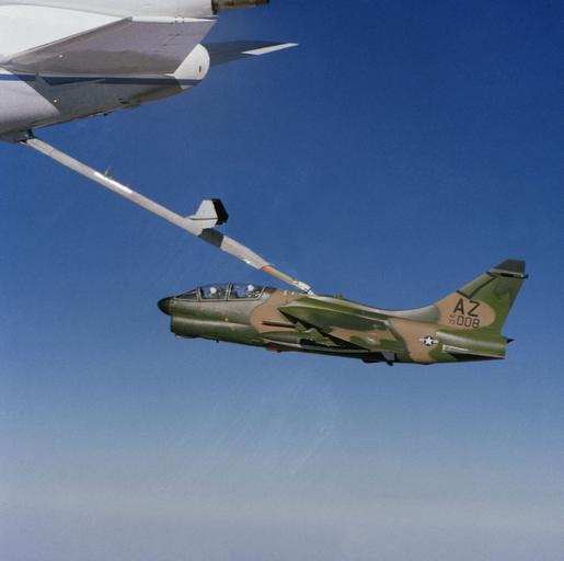 | Keywords: 152d Tactical Fighter Squadron A-7K Corsair II 73-1008 Refueling.jpg en A Vought YA-7K Corsair II s/n 73-1008 of the 162nd Fighter Wing Arizona Air National Guard based at Tucson Internationa Airport Arizona USA is being refueled in flight by a McDonnell Douglas KC-10A Extender aircraft over Edwards Air Force Base California USA on 21 Apr 1982 1973 Delivered to 355th Tactical Fighter Wing/354th TFS Davis-Monthan AFB AZ c/n D-404 Transferred to 354th Tactical Fighter Wing/355th TFS Myrtle Beach AFB SC 1973 Transferred to 186th Tactical Fighter Squadron OK Air National Guard 1977 Removed from operational service flown to LTV at Hensley Field Naval Air Station Dallas for modification to YA-7K 1979 Delivered as A-7K to to 4450th Tactical Group/4451st TS Nellis AFB NV 1981 Transferred to 152d Tactical Fighter Squadron AZ Air National Guard 1989 Transferred to 198th Tactical Fighter Squadron PR Air National Guard 1990 Transferred to AMARC as AE0033 Jun 19 1991 Disposition 15-JUN-98 / To Fritz Enterprises Taylor MI Actually to HVF West yard Tucson Scrapped U S DefenseImagery http //www defenseimagery mil photo VIRIN DF-SC-83-05366 http //www dodmedia osd mil/DVIC_View/Still_Details cfm SDAN DFSC8305366 JPGPath /Assets/1986/Navy/DF-SC-83-05366 JPG 1982-04-21 Camera Operator Harrison USAF PD-USGov DEFAULTSORT Squadron 0152 A-7K Corsair II Aerial refueling 162d Fighter Wing Arizona Air National Guard A-7K Corsair II of the Arizona Air National Guard |