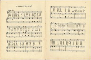 Keywords: 15 Kent gij het land, pagina 18 & 19.jpg Kun je nog zingen zing dan mee Muziek en teksten origineel gepubliceerd voor 1900 own 1915 author PD-old Kun je nog zingen zing dan mee