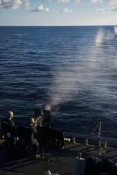| Keywords: navy mediterranean cne-c6f cnec6f sixth fleet sixthfleet uss carney usscarney ddg 64 ddg64 outdoor 160108-N-FP878-378 MEDITERRANEAN SEA (Jan. 8, 2016) Sonar Technician (Surface) 2nd Class Samuel Williams, from Houston, fires a .50 caliber machine gun during a crew served weapons shoot aboard USS Carney (DDG 64) Jan. 8, 2016. Carney, an Arleigh Burke-class guided-missile destroyer, forward deployed to Rota, Spain, is conducting a routine patrol in the U. S. 6th Fleet area of operations in support of U.S. national security interests in Europe. (U.S. Navy photo by Mass Communication Specialist 1st Class Theron J. Godbold/Released) 160108-N-FP878-378 MEDITERRANEAN SEA (Jan. 8, 2016) Sonar Technician (Surface) 2nd Class Samuel Williams, from Houston, fires a .50 caliber machine gun during a crew served weapons shoot aboard USS Carney (DDG 64) Jan. 8, 2016. Carney, an Arleigh Burke-class guided-missile destroyer, forward deployed to Rota, Spain, is conducting a routine patrol in the U. S. 6th Fleet area of operations in support of U.S. national security interests in Europe. (U.S. Navy photo by Mass Communication Specialist 1st Class Theron J. Godbold/Released) |