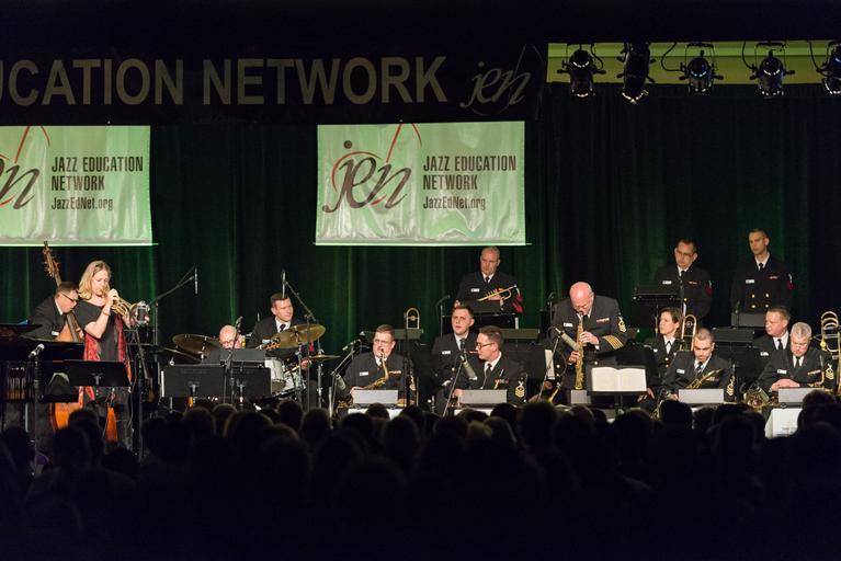 | Keywords: commodores jen navy navy band navyband big band bigband concert jazz swing 160108-N-NW255-007 Louisvile, Ky. (Jan. 8, 2016) Guest artist Ingrid Jensen solos with Senior Chief Musician Steve Williams at the U.S. Navy Band Commodores jazz ensemble's performance at the Jazz Education Network's annual conference. JEN is an organization dedicated to promoting jazz education and performance. (U.S. Navy photo by Chief Musician Melissa Bishop/Released) 160108-N-NW255-007 Louisvile, Ky. (Jan. 8, 2016) Guest artist Ingrid Jensen solos with Senior Chief Musician Steve Williams at the U.S. Navy Band Commodores jazz ensemble's performance at the Jazz Education Network's annual conference. JEN is an organization dedicated to promoting jazz education and performance. (U.S. Navy photo by Chief Musician Melissa Bishop/Released) |