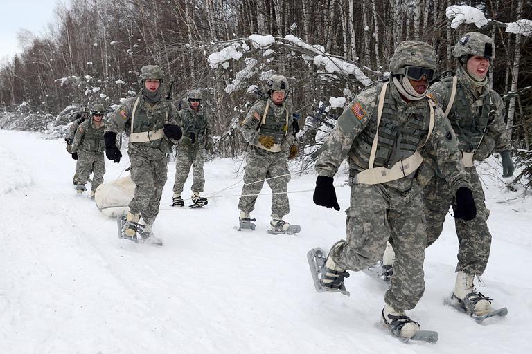 | Keywords: Soldiers use teamwork to drag an ahkio sled loaded with 300-plus pounds of gear during the USARAK Winter Games at Fort Wainwright's Jan. 27, 2016. As America’s Arctic Warriors, USARAK Soldiers train hard to cultivate the knowledge and experience necessary to survive, train, operate, fight and win in extreme cold weather and high altitude environments. The games are an annual opportunity for USARAK units to test their skills, validate their expertise and set a benchmark of excellence for all Arctic Warriors to strive for. Battalions from both Joint Base Elmendorf-Richardson and Fort Wainwright were represented by 10-man teams for a total of 210 competing Soldiers in this year’s games. (Army photo/John Pennell) usa ski alaska army soldiers wintergames susv smallunitsupportvehicle fortwainwright skijour 125sbct usarak akhio usarmyalaska arctictough arcticwarriors 425ibcta |
