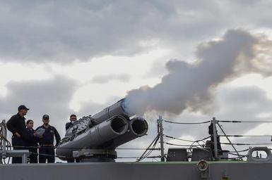 | Keywords: navy mediterranean cne-c6f cnec6f sixth fleet sixthfleet uss carney usscarney ddg 64 ddg64 air slug airslug torpedo mark 32 mark32 vehicle aircraft outdoor airplane 160130-N-FP878-096 SOUDA BAY, Greece (Jan. 30, 2016) Sailors fire an air slug from a mark 32 surface vessel torpedo tube aboard USS Carney (DDG 64) Jan. 30, 2016. Carney, an Arleigh Burke-class guided-missile destroyer, forward deployed to Rota, Spain, is conducting a routine patrol in the U. S. 6th Fleet area of operations in support of U.S. national security interests in Europe. (U.S. Navy photo by Mass Communication Specialist 1st Class Theron J. Godbold/Released) 160130-N-FP878-096 SOUDA BAY, Greece (Jan. 30, 2016) Sailors fire an air slug from a mark 32 surface vessel torpedo tube aboard USS Carney (DDG 64) Jan. 30, 2016. Carney, an Arleigh Burke-class guided-missile destroyer, forward deployed to Rota, Spain, is conducting a routine patrol in the U. S. 6th Fleet area of operations in support of U.S. national security interests in Europe. (U.S. Navy photo by Mass Communication Specialist 1st Class Theron J. Godbold/Released) |