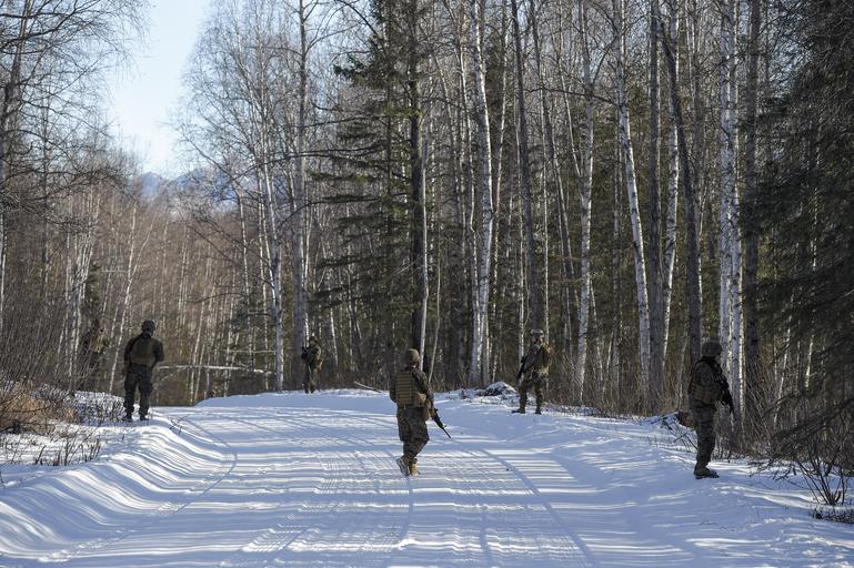 | Keywords: 4th law enforcement battalion 4thlawenforcementbattalion mout military operation on urban terrain militaryoperationonurbanterrain military police militarypolice joint base elmendorf-richardson jointbaseelmendorfrichardson alaska usa us outdoor snow tree plant U.S. Marines assigned to Detachment Military Police Company D, 4th Law Enforcement Battalion, patrol while en route to Baumeister City military operations on urban terrain (MOUT) complex at Joint Base Elmendorf-Richardson, Alaska, March 6, 2016. The MOUT training prepared the Marines for their upcoming deployment to Serbia where they will serve as military police advisors. (U.S. Air Force photo/Alejandro Peña) U.S. Marines assigned to Detachment Military Police Company D, 4th Law Enforcement Battalion, patrol while en route to Baumeister City military operations on urban terrain (MOUT) complex at Joint Base Elmendorf-Richardson, Alaska, March 6, 2016. The MOUT training prepared the Marines for their upcoming deployment to Serbia where they will serve as military police advisors. (U.S. Air Force photo/Alejandro Peña) |