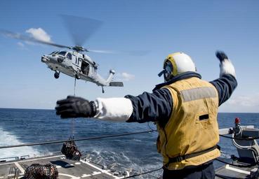 | Keywords: uss chung-hoon usschunghoon ddg 93 ddg93 uss stockdale navy ussstockdalenavy deployment underway great green fleet greatgreenfleet nmcs dvids bulk import dvidsbulkimport sea of japan seaofjapan outdoor U.S. Naval landing signalman directs a helicopter during a vertical replenishment at sea in the sea of Japan aboard USS Chung-Hoon (DDG 93) March 11, 2016. The Chung-Hoon was providing a ready force supporting security and stability in the Indo-Asia-Pacific and was operating as part of the John C. Stennis Strike Group and Great Green Fleet on a regularly scheduled 7th Fleet deployment. (U.S. Navy photo by Mass Communication Specialist 2nd Class Marcus L. Stanley) U.S. Naval landing signalman directs a helicopter during a vertical replenishment at sea in the sea of Japan aboard USS Chung-Hoon (DDG 93) March 11, 2016. The Chung-Hoon was providing a ready force supporting security and stability in the Indo-Asia-Pacific and was operating as part of the John C. Stennis Strike Group and Great Green Fleet on a regularly scheduled 7th Fleet deployment. (U.S. Navy photo by Mass Communication Specialist 2nd Class Marcus L. Stanley) |