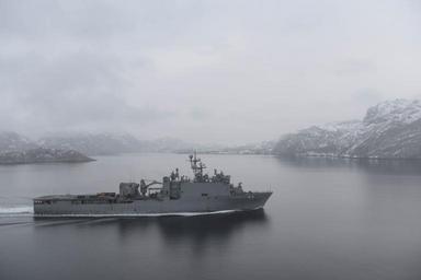 | Keywords: approved outdoor monochrome 160307-N-QJ850-596 NORTH SEA (March 7, 2016) The Whidbey Island-class dock landing ship USS Fort McHenry (LSD 43) transits the Namsos Fjord in Norway during Exercise Cold Response 2016 (CDR 16). CDR 16 involves maritime, land and air operation training and focuses on naval and amphibious operations transitioning to ground maneuver. The location in central Norway provides an extreme cold-weather environment for the 12 participating countries to collectively develop tactics, techniques and procedures and increase interoperability. (U.S. Navy photo by Mass Communication Specialist 3rd Class Andrew Murray/Released) 160307-N-QJ850-596 NORTH SEA (March 7, 2016) The Whidbey Island-class dock landing ship USS Fort McHenry (LSD 43) transits the Namsos Fjord in Norway during Exercise Cold Response 2016 (CDR 16). CDR 16 involves maritime, land and air operation training and focuses on naval and amphibious operations transitioning to ground maneuver. The location in central Norway provides an extreme cold-weather environment for the 12 participating countries to collectively develop tactics, techniques and procedures and increase interoperability. (U.S. Navy photo by Mass Communication Specialist 3rd Class Andrew Murray/Released) |