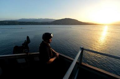 | Keywords: u.s. navy usnavy uss ross (ddg 71) ussrossddg71 seaside landscape shore outdoor ocean water coast sand 160311-N-XT273-317 SOUDA BAY, Greece (March 11, 2016) Fire Controlman 2nd Class Kyle Hooks, from Brenham, Texas, stands small craft action team watch aboard USS Ross (DDG 71) during sea and anchor detail before pulling out of Souda Bay, Greece, March 11, 2016. Ross, an Arleigh Burke-class guided-missile destroyer, forward deployed to Rota, Spain, is conducting a routine patrol in the U.S. 6th Fleet area of operations in support of U.S. national security interests in Europe. (U.S. Navy photo by Mass Communication Specialist 2nd Class Justin Stumberg/Released) 160311-N-XT273-317 SOUDA BAY, Greece (March 11, 2016) Fire Controlman 2nd Class Kyle Hooks, from Brenham, Texas, stands small craft action team watch aboard USS Ross (DDG 71) during sea and anchor detail before pulling out of Souda Bay, Greece, March 11, 2016. Ross, an Arleigh Burke-class guided-missile destroyer, forward deployed to Rota, Spain, is conducting a routine patrol in the U.S. 6th Fleet area of operations in support of U.S. national security interests in Europe. (U.S. Navy photo by Mass Communication Specialist 2nd Class Justin Stumberg/Released) |