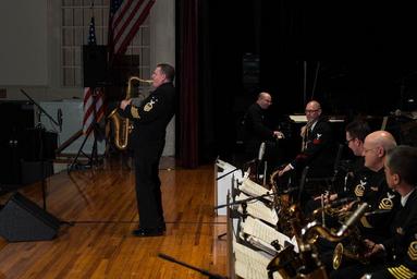 | Keywords: berks jazz fest berksjazzfest commodores navy navy band navyband pa reading big band bigband concert jazz music 160405-N-DD694-026 POTTSTOWN, Pa. (April 5, 2016) Master Chief Musician Phil Burlin, of Baltimore, Md., takes a tenor saxophone solo with the United States Navy Band Commodores. The concert was held at Pottstown High School in conjunction with the Berks Jazz Fest. (U.S. Navy photo by Musician 1st Class Jonathan Barnes/Released) 160405-N-DD694-026 POTTSTOWN, Pa. (April 5, 2016) Master Chief Musician Phil Burlin, of Baltimore, Md., takes a tenor saxophone solo with the United States Navy Band Commodores. The concert was held at Pottstown High School in conjunction with the Berks Jazz Fest. (U.S. Navy photo by Musician 1st Class Jonathan Barnes/Released) |