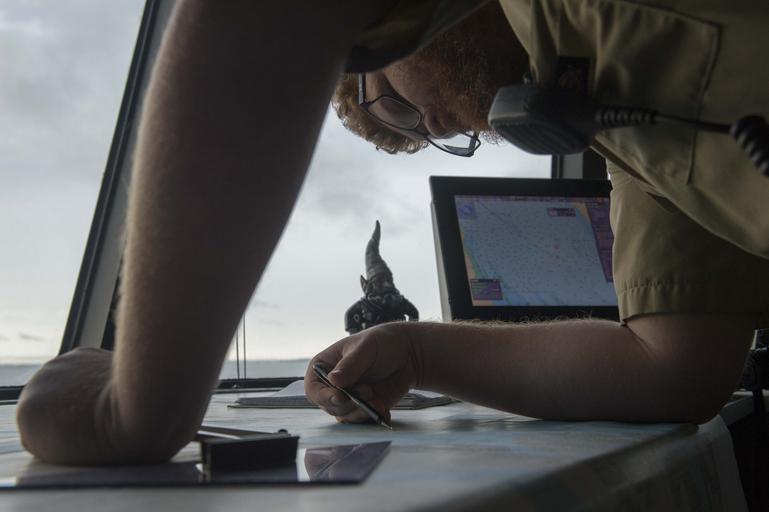 | Keywords: africa partnership station; africa partnership station 2016; aps16; aps; c6f; usns; spearhead; navy; partnership; military sealift command; u.s. navy; navy; africapartnershipstationafricapartnershipstation2016aps16apsc6fusnsspearheadnavypartnershipmilitarysealiftcommandusnavynavy usns spearhead (t-epf 1) usnsspearheadtepf1 160411-N-WV703-022 LIBREVILLE, Gabon (April 11, 2016) - 3rd Mate Alexander Spitz, a civil service mariner, maps out coordinates aboard USNS Spearhead (T-EPF 1) while pulling into port in Libreville, Gabon April 11, 2016. The Military Sealift Command expeditionary fast transport vessel USNS Spearhead is on a scheduled deployment in the U.S. 6th Fleet area of operations to support the international collaborative capacity-building program Africa Partnership Station. (U.S. Navy photo by Mass Communication Specialist 3rd Class Amy M. Ressler/Released) 160411-N-WV703-022 LIBREVILLE, Gabon (April 11, 2016) - 3rd Mate Alexander Spitz, a civil service mariner, maps out coordinates aboard USNS Spearhead (T-EPF 1) while pulling into port in Libreville, Gabon April 11, 2016. The Military Sealift Command expeditionary fast transport vessel USNS Spearhead is on a scheduled deployment in the U.S. 6th Fleet area of operations to support the international collaborative capacity-building program Africa Partnership Station. (U.S. Navy photo by Mass Communication Specialist 3rd Class Amy M. Ressler/Released) |