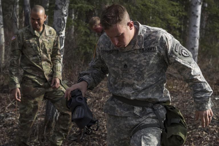 | Keywords: joint base elmendorf-richardson; alaska; paratroopers; airborne; jointbaseelmendorfrichardsonalaskaparatroopersairborne biological radiological and nuclear; training radiologicalandnucleartraining joint base elmendorf-richardson jointbaseelmendorfrichardson alaska usa joint base elmendorf-richardson; alaska; paratroopers; airborne; jber; us army; us army alaska; usarpac; us army pacific; cs; gas; chemical jointbaseelmendorfrichardsonalaskaparatroopersairbornejberusarmyusarmyalaskausarpacusarmypacificcsgaschemical outdoor Army Staff Sgt. Derek Leonhardt, assigned to B Troop, 1st Squadron (Airborne), 40th Cavalry Regiment, 4th Brigade Combat Team (Airborne), 25th Infantry Division, U.S. Army Alaska, reacts to CS gas exposure during chemical, biological, radiological and nuclear defense training on Joint Base Elmendorf-Richardson, Alaska, Wednesday, April 13, 2016. The training culminated with masked Soldiers entering a sealed chamber filled with CS, then removing their protective gear to promote confidence in their equipment. CS, technically known as 0 chlorobenzalmalononitrile, is a solid white powder mixed with a dispersal agent and commonly referred to as tear gas. (U.S. Air Force photo/Justin Connaher) Army Staff Sgt. Derek Leonhardt, assigned to B Troop, 1st Squadron (Airborne), 40th Cavalry Regiment, 4th Brigade Combat Team (Airborne), 25th Infantry Division, U.S. Army Alaska, reacts to CS gas exposure during chemical, biological, radiological and nuclear defense training on Joint Base Elmendorf-Richardson, Alaska, Wednesday, April 13, 2016. The training culminated with masked Soldiers entering a sealed chamber filled with CS, then removing their protective gear to promote confidence in their equipment. CS, technically known as 0 chlorobenzalmalononitrile, is a solid white powder mixed with a dispersal agent and commonly referred to as tear gas. (U.S. Air Force photo/Justin Connaher) |
