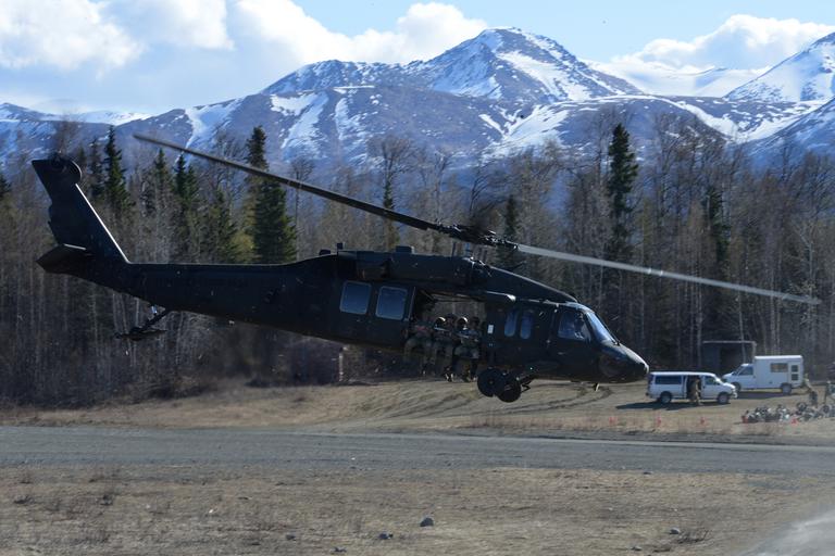 Keywords: joint base elmendorf-richardson jointbaseelmendorfrichardson alaska usa outdoor landscape mountain Airmen and Soldiers perform static and free-fall parachute jumps out of UH-60 Black Hawk helicopters as part of Grizzly Breakup, a training exercise, at Malemute drop zone, Joint Base Elmendorf-Richardson, Alaska, April 18, 2016. Grizzly Breakup is a week-long operation where service members from seven special operations units, spanning multiple installations, participate in parachute jumps out of Black Hawks and C-17 Globemaster IIIs. Airmen and Soldiers perform static and free-fall parachute jumps out of UH-60 Black Hawk helicopters as part of Grizzly Breakup, a training exercise, at Malemute drop zone, Joint Base Elmendorf-Richardson, Alaska, April 18, 2016. Grizzly Breakup is a week-long operation where service members from seven special operations units, spanning multiple installations, participate in parachute jumps out of Black Hawks and C-17 Globemaster IIIs.