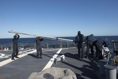 | Keywords: u.s. navy usnavy navy mc navymc nsa naples nsanaples npase-east npaseeast navy public affairs navypublicaffairs sailors marines europe italy nato outdoor 160422-N-TC720-062 BALTIC SEA (April 23, 2016) - Sailors aboard USS Donald Cook (DDG 75) put up the flag staff as the ship pulls into Kiel, Germany, during a scheduled port visit April 23, 2016. Donald Cook, an Arleigh Burke-class guided-missile destroyer, forward deployed to Rota, Spain is conducting a routine patrol in the U.S. 6th Fleet area of operations in support of U.S. national security interests in Europe. (U.S. Navy photo by Mass Communication Specialist 2nd Class Mat Murch/Released) 160422-N-TC720-062 BALTIC SEA (April 23, 2016) - Sailors aboard USS Donald Cook (DDG 75) put up the flag staff as the ship pulls into Kiel, Germany, during a scheduled port visit April 23, 2016. Donald Cook, an Arleigh Burke-class guided-missile destroyer, forward deployed to Rota, Spain is conducting a routine patrol in the U.S. 6th Fleet area of operations in support of U.S. national security interests in Europe. (U.S. Navy photo by Mass Communication Specialist 2nd Class Mat Murch/Released) |