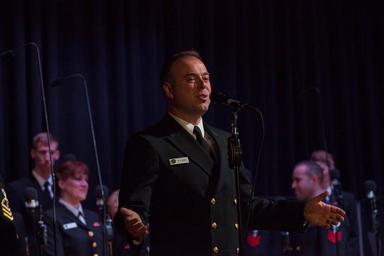 | Keywords: michael webb michaelwebb music navy navy band navyband new jersey newjersey phillipsburg sea chanters seachanters navybandtour PHILLIPSBURG, N.J. (April 22, 2016) Musician 1st Class Michael Webb serves as the narrator for the United States Navy Band Sea Chanters chorus. The Sea Chanters are finishing up a 22-day tour of the northeastern United States. (U.S. Navy photo by Musician 1st Class Sarah Blecker/Released) PHILLIPSBURG, N.J. (April 22, 2016) Musician 1st Class Michael Webb serves as the narrator for the United States Navy Band Sea Chanters chorus. The Sea Chanters are finishing up a 22-day tour of the northeastern United States. (U.S. Navy photo by Musician 1st Class Sarah Blecker/Released) |