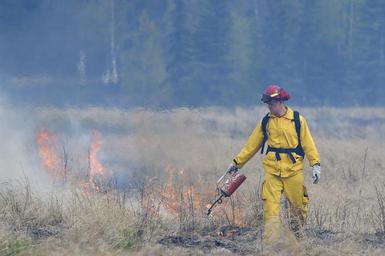 Keywords: firefighter controlled burns controlledburns 673rd civil engineer squadron 673rdcivilengineersquadron joint base elmendorf-richardson jointbaseelmendorfrichardson alaska usa us outdoor U.S. Air Force Staff Sgt. Daniel Easterlund, a fire protection specialist assigned to the 673rd Civil Engineer Squadron, uses a drip torch to light a back fire during a controlled burn at Grezelka range on Joint Base Elmendorf-Richardson, Alaska, May 2, 2016. According to the National Oceanic and Atmospheric Administration, last winter in Alaska was the second warmest on record dating back to 1925. Combined with record-low snowfall and precipitation, the chance of fire activity greatly increases as combustible dry detritus accumulates. Controlled burns reduce the chance of spot fires by removing excess dry brush and grass. (U.S. Air Force photo/Alejandro Pena) U.S. Air Force Staff Sgt. Daniel Easterlund, a fire protection specialist assigned to the 673rd Civil Engineer Squadron, uses a drip torch to light a back fire during a controlled burn at Grezelka range on Joint Base Elmendorf-Richardson, Alaska, May 2, 2016. According to the National Oceanic and Atmospheric Administration, last winter in Alaska was the second warmest on record dating back to 1925. Combined with record-low snowfall and precipitation, the chance of fire activity greatly increases as combustible dry detritus accumulates. Controlled burns reduce the chance of spot fires by removing excess dry brush and grass. (U.S. Air Force photo/Alejandro Pena)