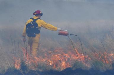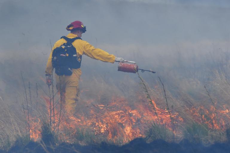 Keywords: firefighter controlled burns controlledburns 673rd civil engineer squadron 673rdcivilengineersquadron joint base elmendorf-richardson jointbaseelmendorfrichardson alaska usa us outdoor U.S. Air Force Staff Sgt. Daniel Easterlund, a fire protection specialist assigned to the 673rd Civil Engineer Squadron, uses a drip torch to light a back fire during a controlled burn at Grezelka range on Joint Base Elmendorf-Richardson, Alaska, May 2, 2016. According to the National Oceanic and Atmospheric Administration, last winter in Alaska was the second warmest on record dating back to 1925. Combined with record-low snowfall and precipitation, the chance of fire activity greatly increases as combustible dry detritus accumulates. Controlled burns reduce the chance of spot fires by removing excess dry brush and grass. (U.S. Air Force photo/Alejandro Pena) U.S. Air Force Staff Sgt. Daniel Easterlund, a fire protection specialist assigned to the 673rd Civil Engineer Squadron, uses a drip torch to light a back fire during a controlled burn at Grezelka range on Joint Base Elmendorf-Richardson, Alaska, May 2, 2016. According to the National Oceanic and Atmospheric Administration, last winter in Alaska was the second warmest on record dating back to 1925. Combined with record-low snowfall and precipitation, the chance of fire activity greatly increases as combustible dry detritus accumulates. Controlled burns reduce the chance of spot fires by removing excess dry brush and grass. (U.S. Air Force photo/Alejandro Pena)
