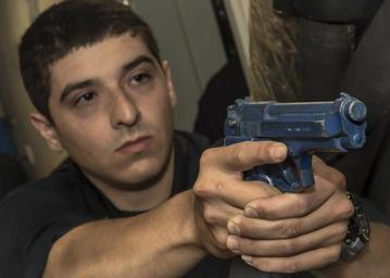 | Keywords: uss porter (ddg 78) ussporterddg78 destroyer srf-b srfb security reation force basic securityreationforcebasic 9m portrait people indoor 160504-N-FQ994-029 MEDITERRANEAN SEA (May 4, 2016) Electronics Technician 2nd Class Manuel Bolanos, from McAllen, Texas, aims an M9 9mm training pistol aboard USS Porter (DDG 78) during security reaction force basic (SRF-B) training May 4, 2016. Porter, an Arleigh Burke-class guided-missile destroyer, forward-deployed to Rota, Spain, is conducting a routine patrol in the U.S. 6th Fleet area of operations in support of U.S. national security interests in Europe. (U.S. Navy Photo by Mass Communication Specialist 3rd Class Robert S. Price/Released) 160504-N-FQ994-029 MEDITERRANEAN SEA (May 4, 2016) Electronics Technician 2nd Class Manuel Bolanos, from McAllen, Texas, aims an M9 9mm training pistol aboard USS Porter (DDG 78) during security reaction force basic (SRF-B) training May 4, 2016. Porter, an Arleigh Burke-class guided-missile destroyer, forward-deployed to Rota, Spain, is conducting a routine patrol in the U.S. 6th Fleet area of operations in support of U.S. national security interests in Europe. (U.S. Navy Photo by Mass Communication Specialist 3rd Class Robert S. Price/Released) |