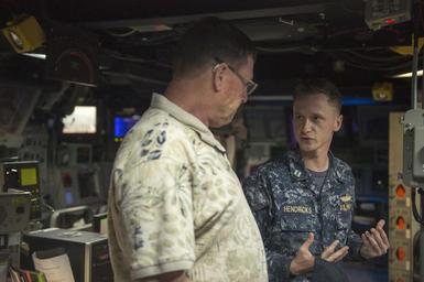 | Keywords: u.s. navy usnavy navy mc navymc nsa naples nsanaples npase-east npaseeast navy public affairs navypublicaffairs sailors marines europe italy nato rota spain 160506-N-TC720-097 ROTA, Spain (May 6, 2016) Christopher Cook, eldest son of USS Donald Cook's (DDG 75) namesake, Col. Donald Cook, right, is given a tour of the ship from Lt. Fred Hendricks III, from Indianapolis, May 6, 2016. Donald Cook, an Arleigh Burke-class guided-missile destroyer, forward deployed to Rota, Spain is conducting a routine patrol in the U.S. 6th Fleet area of operations in support of U.S. national security interests in Europe. (U.S. Navy photo by Mass Communication Specialist 2nd Class Mat Murch/Released) 160506-N-TC720-097 ROTA, Spain (May 6, 2016) Christopher Cook, eldest son of USS Donald Cook's (DDG 75) namesake, Col. Donald Cook, right, is given a tour of the ship from Lt. Fred Hendricks III, from Indianapolis, May 6, 2016. Donald Cook, an Arleigh Burke-class guided-missile destroyer, forward deployed to Rota, Spain is conducting a routine patrol in the U.S. 6th Fleet area of operations in support of U.S. national security interests in Europe. (U.S. Navy photo by Mass Communication Specialist 2nd Class Mat Murch/Released) |