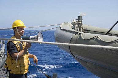 | Keywords: uss porter (ddg 78) ussporterddg78 boatswain's mate boatswainsmate mediterranean sea mediterraneansea outdoor 160511-N-FQ994-048 MEDITERRANEAN SEA (May 11, 2016) Boatswain's Mate 3rd Class Anthony Sanchez, from Hammond, Indiana, sends the command to lower a rigid-hull inflatable boat from USS Porter (DDG 78) into the Mediterranean Sea May 11, 2016. Porter, an Arleigh Burke-class guided-missile destroyer, forward-deployed to Rota, Spain, is conducting a routine patrol in the U.S. 6th Fleet area of operations in support of U.S. national security interests in Europe. (U.S. Navy Photo by Mass Communication Specialist 3rd Class Robert S. Price/Released) 160511-N-FQ994-048 MEDITERRANEAN SEA (May 11, 2016) Boatswain's Mate 3rd Class Anthony Sanchez, from Hammond, Indiana, sends the command to lower a rigid-hull inflatable boat from USS Porter (DDG 78) into the Mediterranean Sea May 11, 2016. Porter, an Arleigh Burke-class guided-missile destroyer, forward-deployed to Rota, Spain, is conducting a routine patrol in the U.S. 6th Fleet area of operations in support of U.S. national security interests in Europe. (U.S. Navy Photo by Mass Communication Specialist 3rd Class Robert S. Price/Released) |