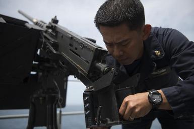 | Keywords: scat mt whitney mtwhitney lcc 20 lcc20 machine gun machinegun repair 160524-N-KP948-008 LISBON, Portugal (May 24, 2016) - Senior Chief Machinist's Mate John Sarmiento repairs a .50-caliber machine gun while aboard USS Mount Whitney (LCC 20), May 24, 2016. Mount Whitney, the U.S. 6th Fleet command and control ship forward deployed to Gaeta, Italy, operates with a combined crew of U.S. Navy Sailors and Military Sealift Command civil service mariners. (U.S. Navy photo by Mass Communication Specialist Seaman Alyssa Weeks/Released) 160524-N-KP948-008 LISBON, Portugal (May 24, 2016) - Senior Chief Machinist's Mate John Sarmiento repairs a .50-caliber machine gun while aboard USS Mount Whitney (LCC 20), May 24, 2016. Mount Whitney, the U.S. 6th Fleet command and control ship forward deployed to Gaeta, Italy, operates with a combined crew of U.S. Navy Sailors and Military Sealift Command civil service mariners. (U.S. Navy photo by Mass Communication Specialist Seaman Alyssa Weeks/Released) |