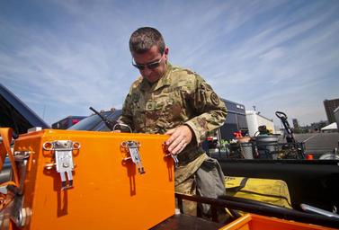 | Keywords: u.s. army usarmy u.s. air force usairforce air national guard airnationalguard army national guard armynationalguard usa usaf ang national guard nationalguard nj national guard njnationalguard new jersey newjersey cst civil support team civilsupportteam joint base mcguire-dix-lakehurst jointbasemcguiredixlakehurst camden exercise response soldier airman military n.j. nj public domain publicdomain free outdoor U.S. Army Sgt. 1st Class Steve Kovaks, from the New Jersey Army National Guard's 21st Civil Support Team, inspects gear during a training proficiency evaluation at the South Jersey Port Corporation on the Camden Waterfront in Camden, N.J., May 24, 2016. The 21st Civil Support Team is a joint unit made up of Soldiers and Airmen, and their mission is to support civil authorities by identifying chemical, biological, radiological, and nuclear substances in either man made or natural disasters. (U.S. Air National Guard photo by Tech. Sgt. Matt Hecht/Released) U.S. Army Sgt. 1st Class Steve Kovaks, from the New Jersey Army National Guard's 21st Civil Support Team, inspects gear during a training proficiency evaluation at the South Jersey Port Corporation on the Camden Waterfront in Camden, N.J., May 24, 2016. The 21st Civil Support Team is a joint unit made up of Soldiers and Airmen, and their mission is to support civil authorities by identifying chemical, biological, radiological, and nuclear substances in either man made or natural disasters. (U.S. Air National Guard photo by Tech. Sgt. Matt Hecht/Released) |